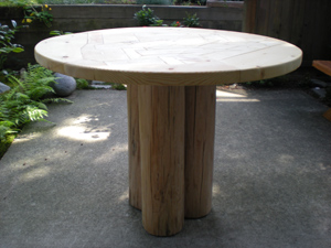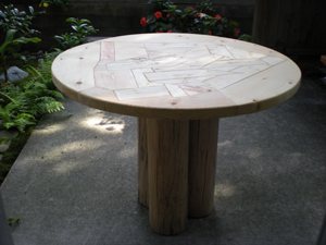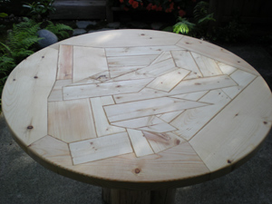 puzzle top on logs.