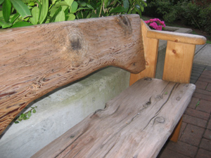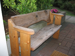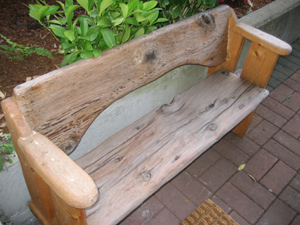 carved seat. reclaimed wood.